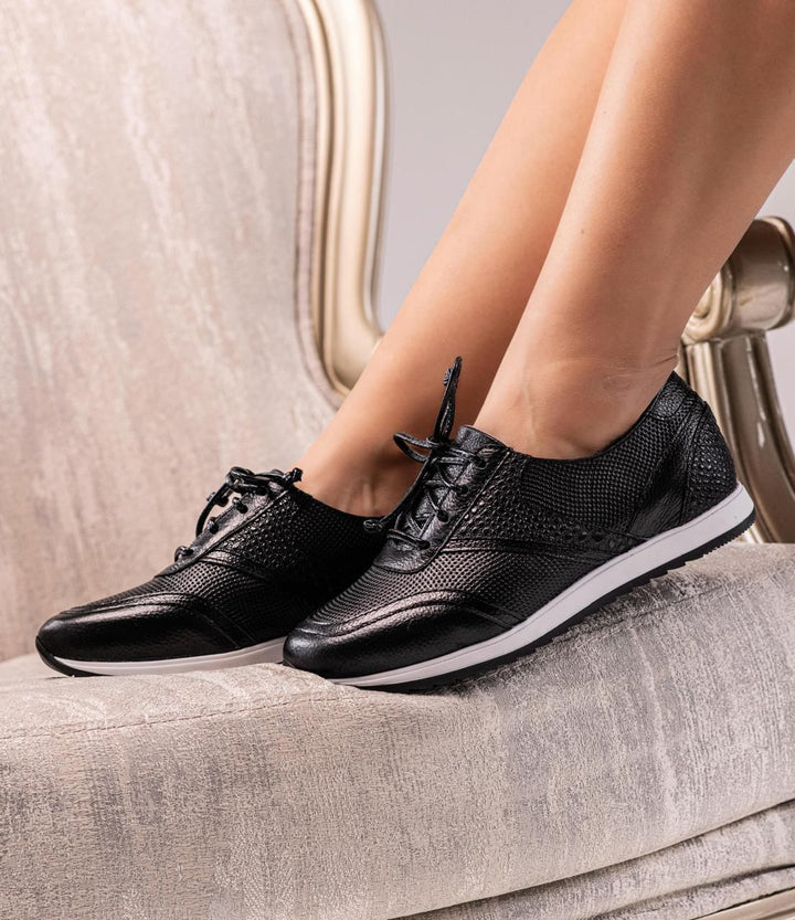 Nuestras TENIS GRETA están elaborados con cuero de alta calidad, lo que no solo garantiza su durabilidad, sino también un acabado elegante que se adapta a cualquier ocasión, permitiéndote lucir bien mientras te sientes cómodo.